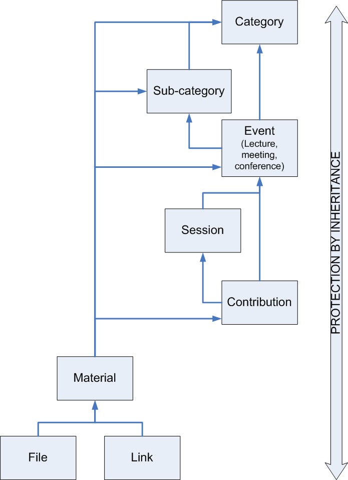 In Indico, an object can be a category, an event, a session, a contribution, material, files and links. You need to assign a level of protection to all of these events. There are three different kinds of events in Indico: